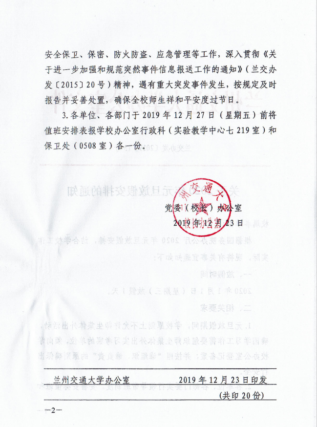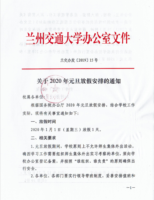 关于2020年元旦放假安排的通知